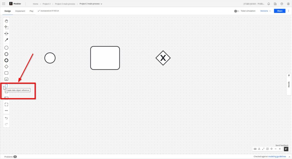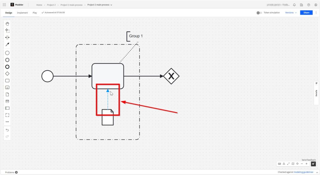 As with the sequence flow, I click on the object I want to start from – here the data object.