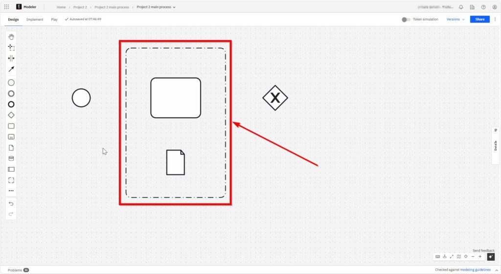 With another left click, I place the task element in the grid.