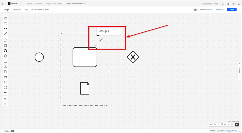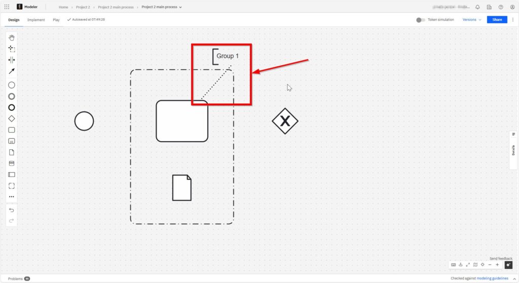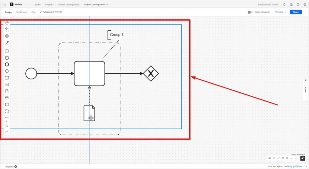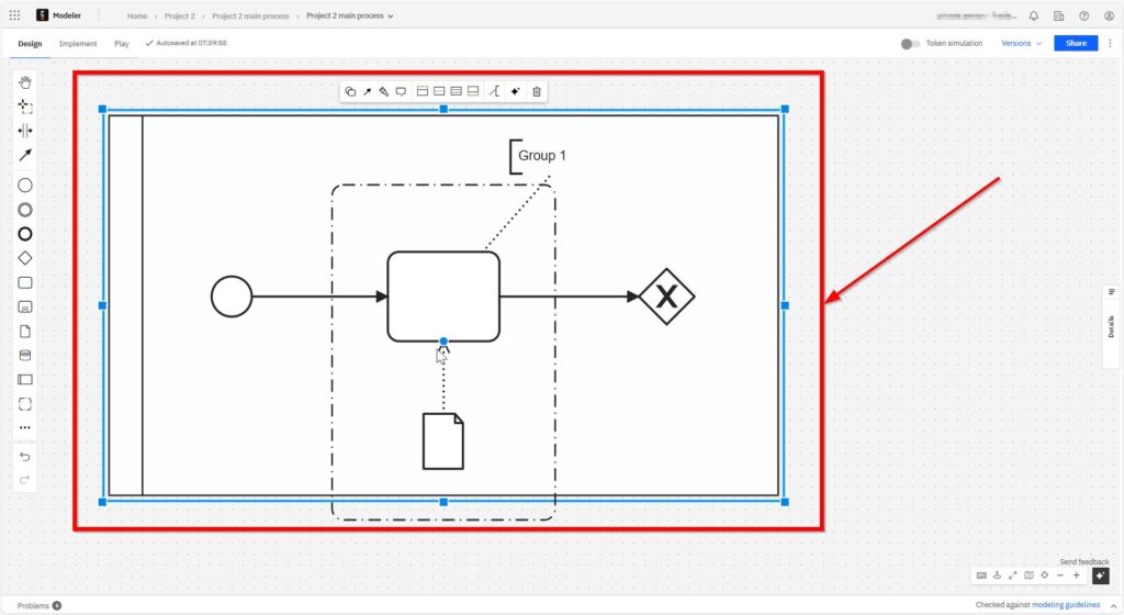 With a left click, I place the grouping element in the grid.