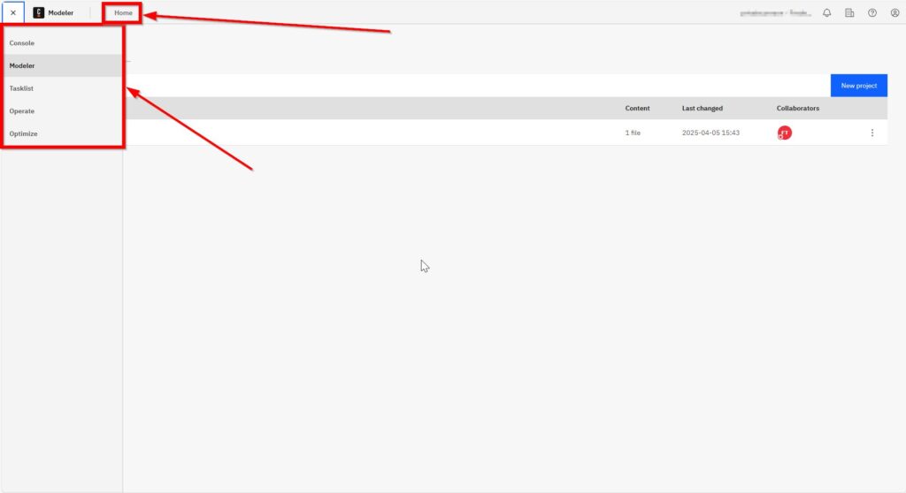 Need to create a new project? Simply click the blue button labeled clearly for this purpose. The Camunda Home User Interface is designed to keep things simple and intuitive.