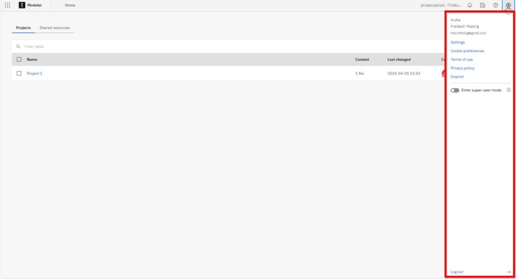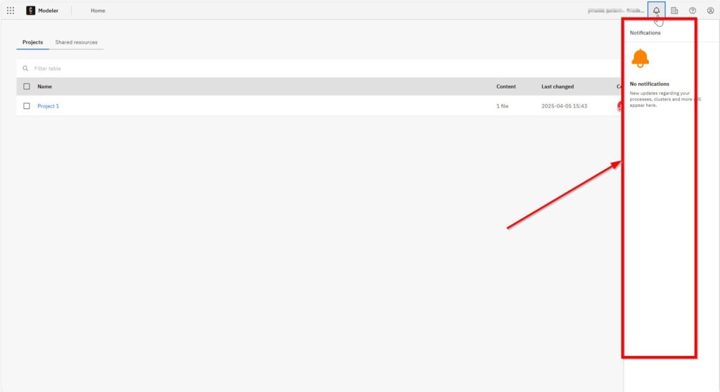 However, I do have a project named “Project 1.” Under each project, details are neatly organized. You’ll see the project’s “Name,” the quantity of “Content”—which includes your processes and diagrams—your latest changes, collaborators, and various options for management.