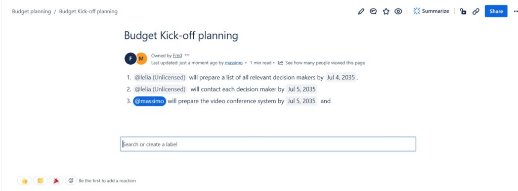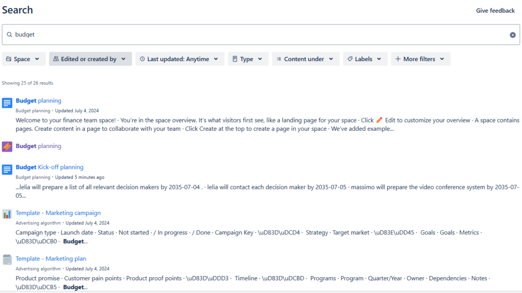 As our content grows, finding specific information quickly becomes crucial. Confluence’s Labels and Search functionalities are lifesavers in this regard. I apply labels to pages to categorize them based on topics, departments, or any other criteria relevant to our workflow. This makes it easy to filter and locate pages on a specific topic.