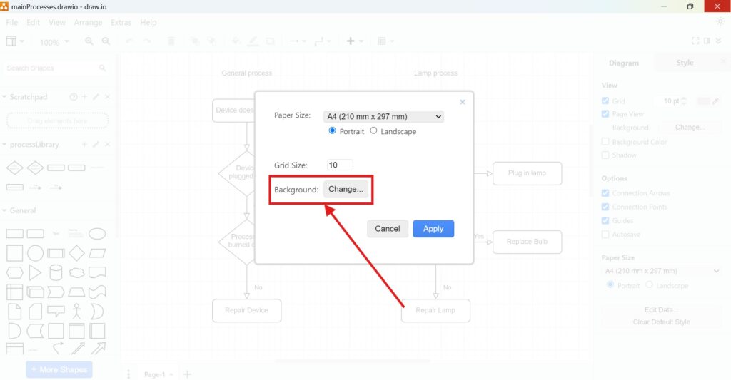 Steps to Change the Draw.io Page Setup