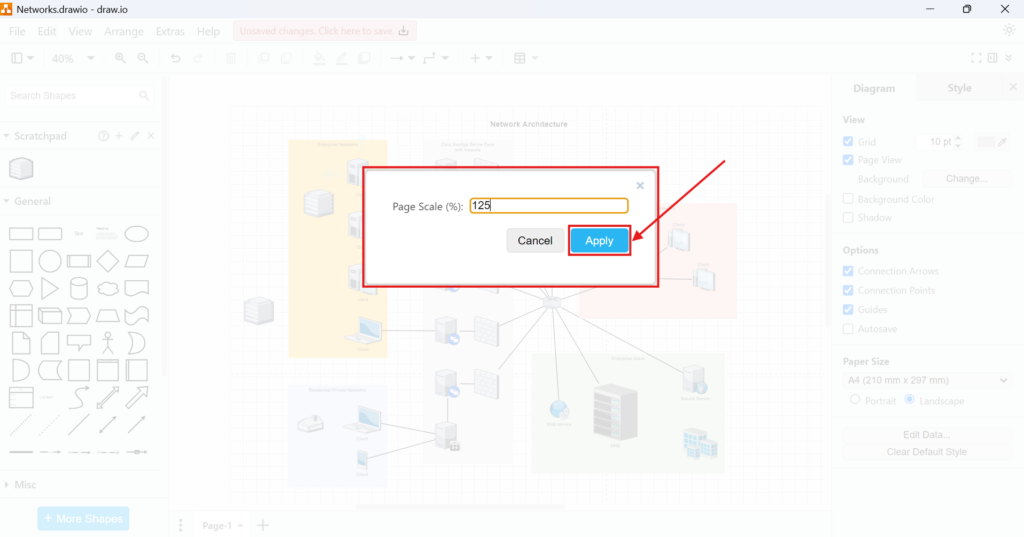 How to Change the Page Scale in draw.io
