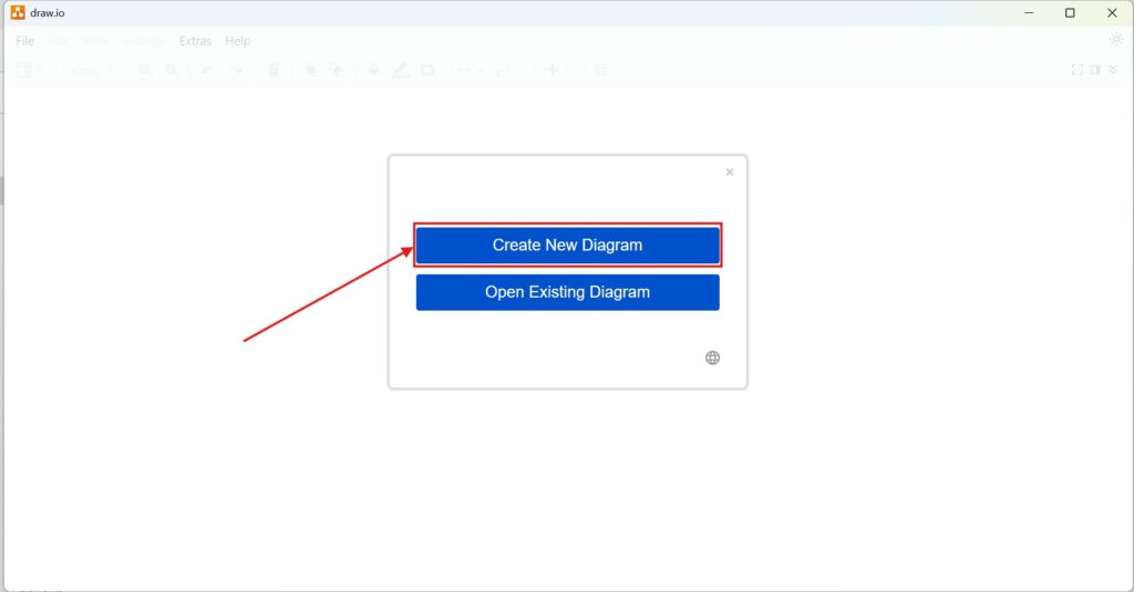 2. Step: Choose “Create New Diagram”: When the program loads, you’ll see two options: “Create New Diagram” and “Open Existing Diagram.” Click on “Create New Diagram.”
