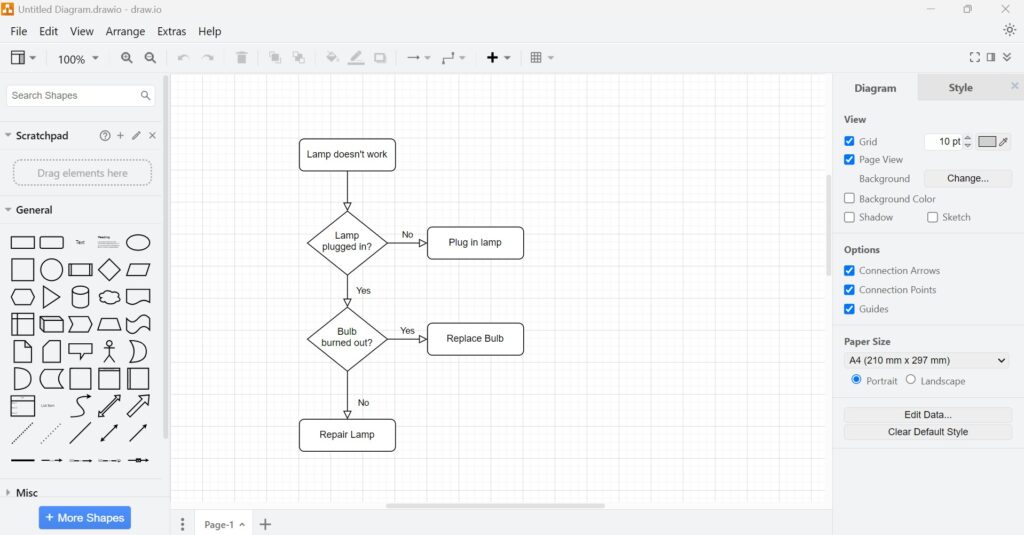 Draw.io is a powerful, free diagramming tool. It allows you to create flowcharts, network diagrams, org charts, and more. It’s user-friendly and doesn’t require any advanced design skills. One of its best features is its extensive library of templates. These templates save time and help you create professional diagrams effortlessly.