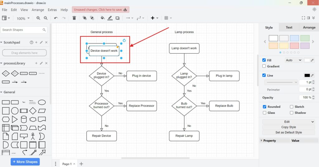 Let’s say you’re tasked with creating a workflow diagram for a project management process. Using draw.io, you design the flow’s first step—a rectangle labeled “Task Initiation.” Instead of recreating similar shapes for subsequent steps, you can duplicate the initial rectangle. Simply click on it, press “Ctrl+D,” and move the copy to the next position. Repeat this for each step, adjusting labels as needed. By doing so, you save time and ensure a uniform look across the diagram. This efficiency isn’t just a time-saver; it also reduces errors caused by manual inconsistencies.