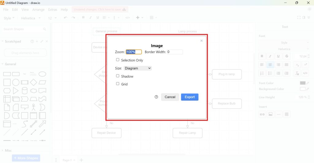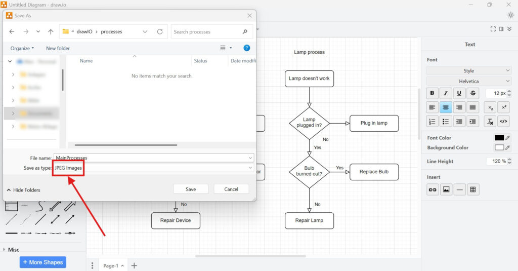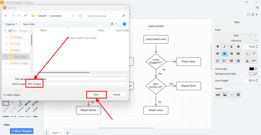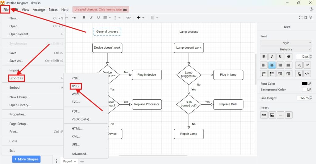 Steps to Export a Diagram to JPEG in draw.io