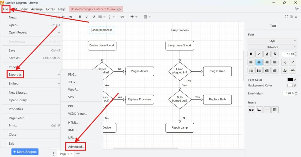 draw.io (opens in a new tab) is an intuitive, online diagramming tool. I’ve used it for everything from flowcharts to network diagrams. Its simplicity stands out, but it doesn’t skimp on advanced features. Best of all, it’s free and supports a wide range of file exports, including JPEG. Let me walk you through the steps to export your diagrams.