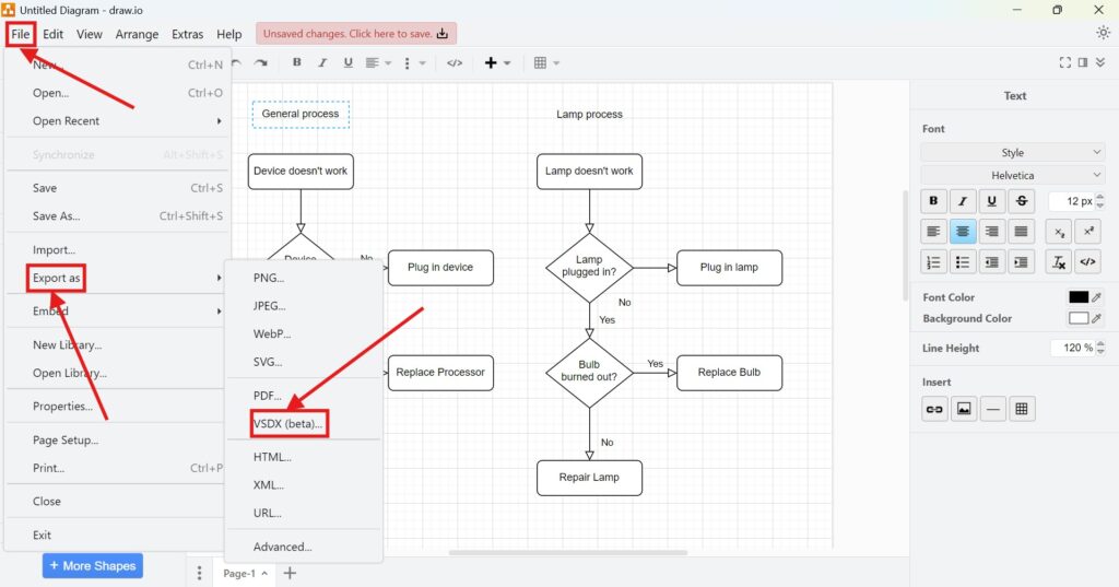 Exporting a Diagram to VSDX in draw.io