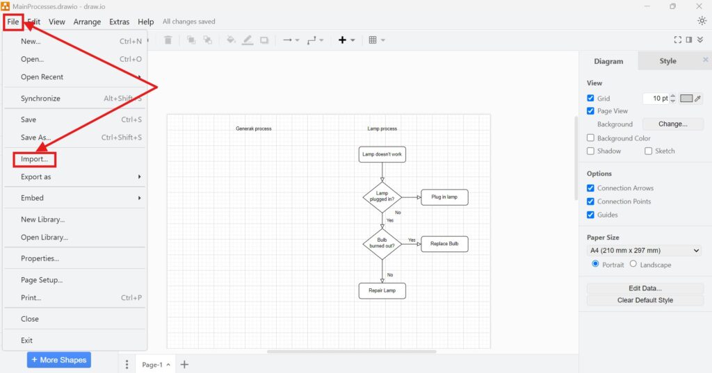 Step 2: Navigate to File > Import From: Click the menu and choose “Import From.” This option lets you locate your diagram file.