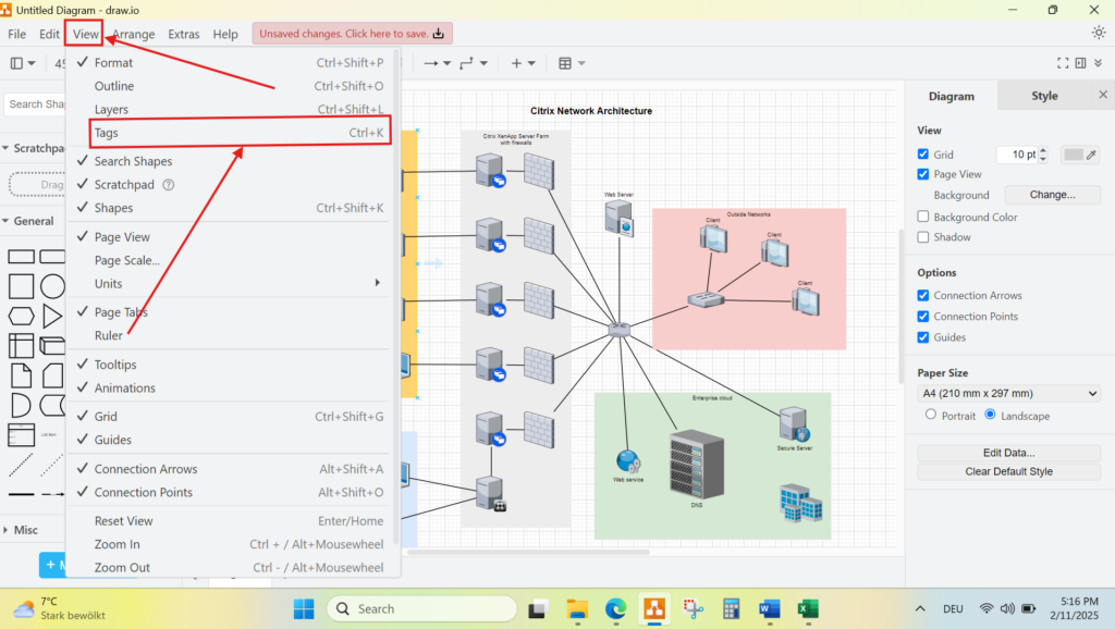 Working with complex diagrams in draw.io can quickly become overwhelming. However, the tags view helps me stay organized. With tags, I can label elements and decide whether to display them. This makes my workflow more efficient, especially when dealing with layered diagrams.