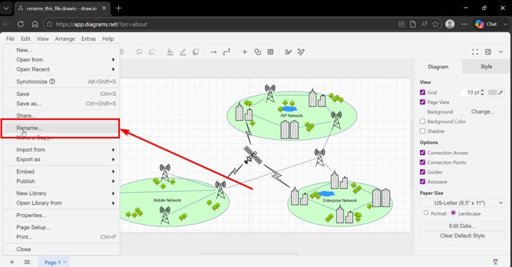 I rename files in draw.io to keep control over my work. Clear names help me find the right diagram fast. As a result, I waste less time searching. I also avoid opening the wrong file.