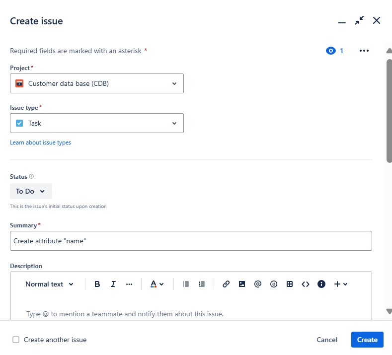 The issue creation dialog will prompt you to enter various details. Here’s a breakdown of the fields you need to fill: