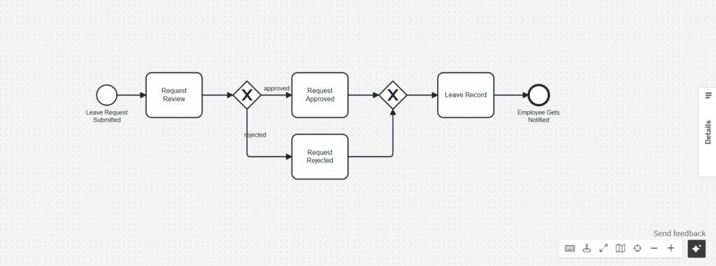 Let’s break it down with a simple example. Suppose an employee requests time off. The process could look like this:
