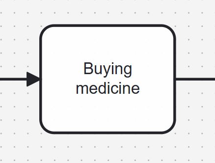 Tasks represent the core of every BPMN model. Simply put, a task shows that something needs to be done. Without tasks, the process can’t deliver any outcome. Technically, tasks belong to a broader category called activities, which also includes subprocesses. In our diagram, for example, buying medicine is a task.