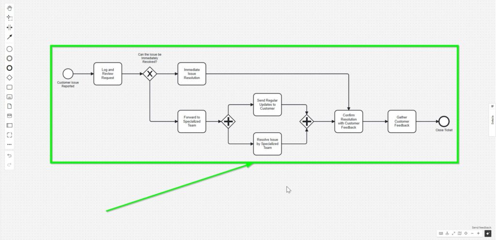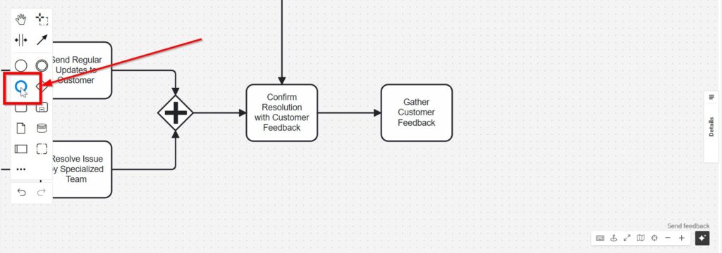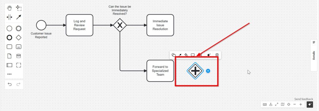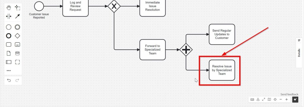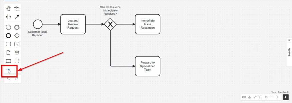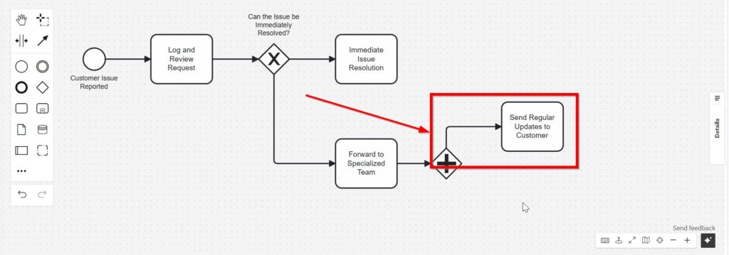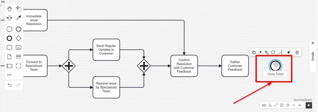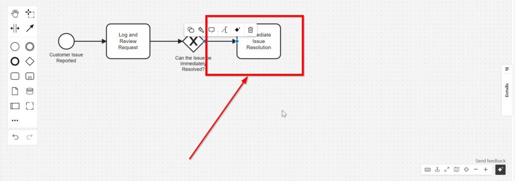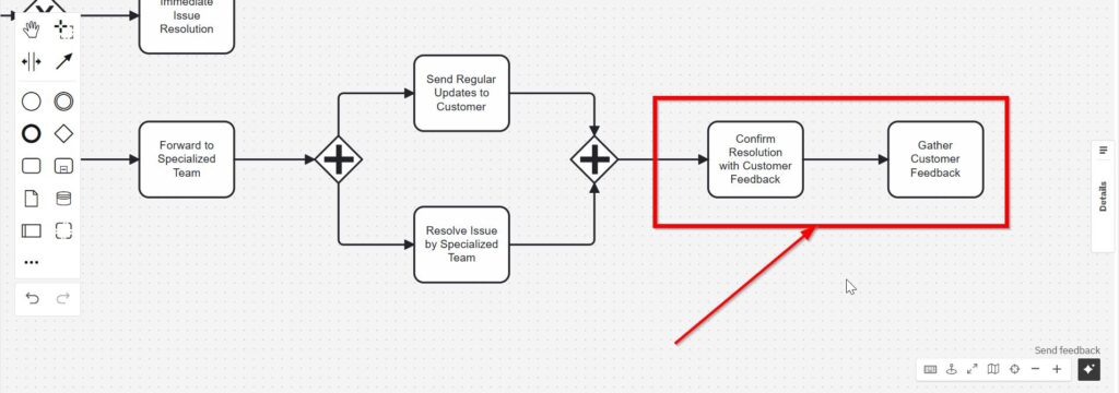 At this point, we can revisit the “Immediate Issue Resolution” task and connect it with “Confirm Resolution with Customer Feedback.”