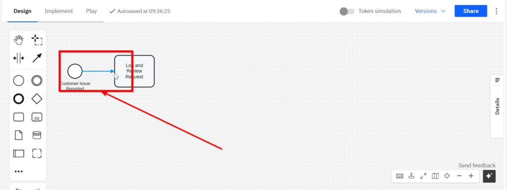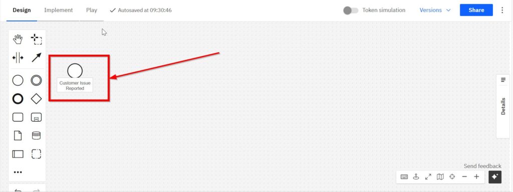 Drag a “Start Event” onto your workspace. Then label it clearly, such as “Customer Issue Reported.”