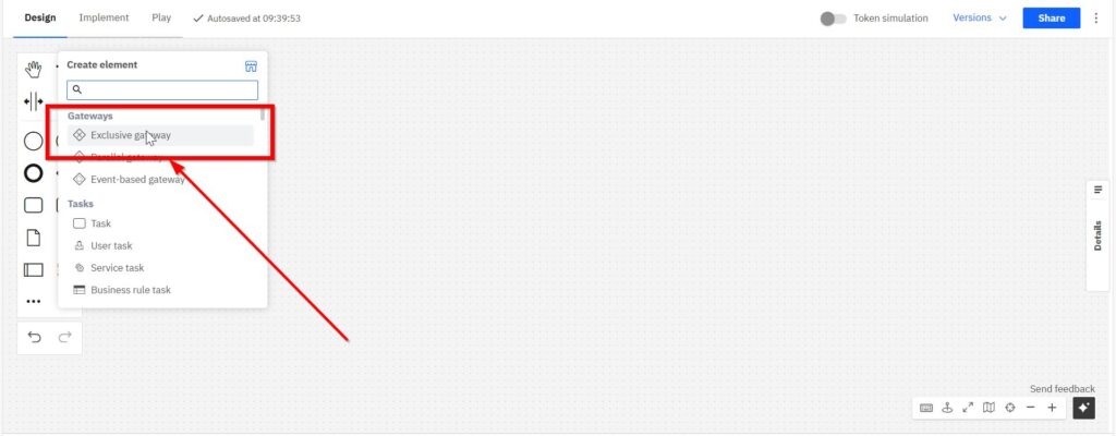 Click on “Exclusive gateway”.